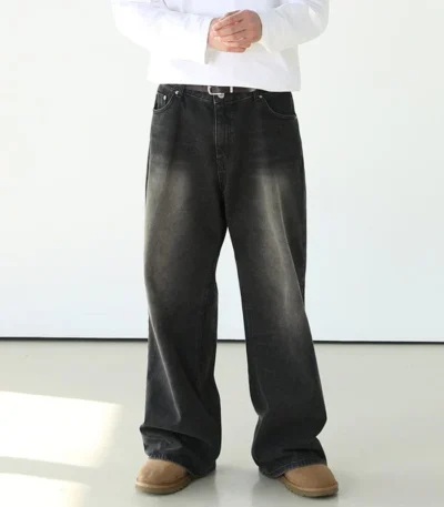$25.99WASHED BLACK WIDE STRAIGHT DENIM JEANS